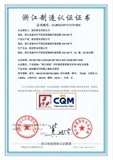 浙江制造認(rèn)證證書