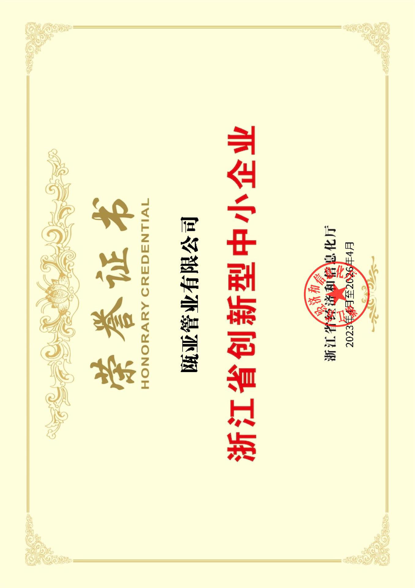 浙江省創(chuàng)新型中小企業(yè)