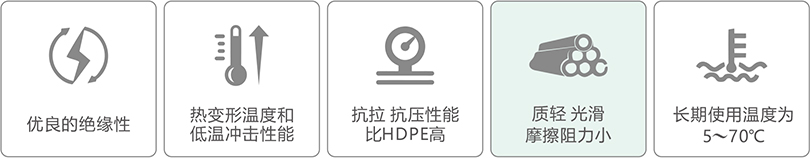 ●產(chǎn)品優(yōu)越性:具有抗高溫、耐外牙的特點(diǎn),適用于10KV以上高壓輸電線電纜排管管材。管材常用規(guī)格為Φ110~Φ250,分為普通型和加強(qiáng)型。普通型MPP管適用于開(kāi)挖鋪設(shè)施工和非開(kāi)挖穿越施工埋深小于4M的工程;加強(qiáng)型適用于非開(kāi)挖穿越施工埋深大于4M的工程。